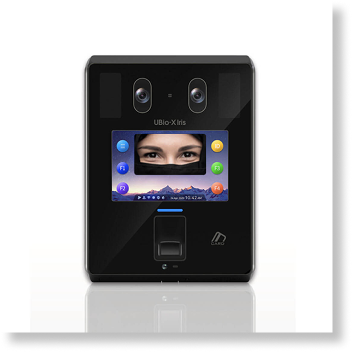 UBio-X Iris is our brand new access control and time and attendance terminal recognizes iris at a distance upto 50 cm, provides fast accurate iris authentication even when new user wear glasses or mask, protective clothes, niqab, hijab and more.